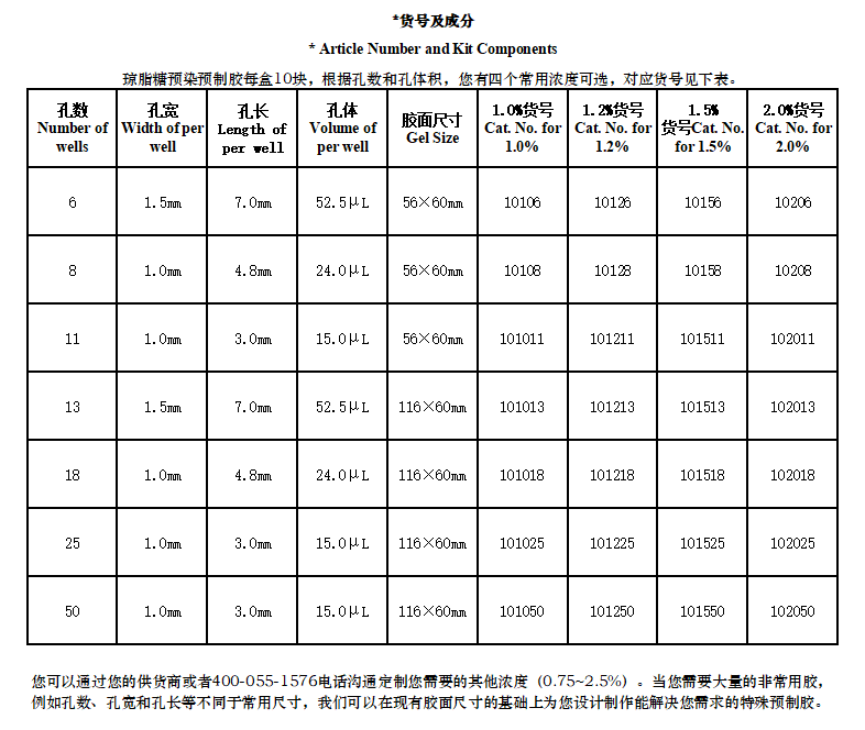 56×60mm瓊脂糖預(yù)制膠101050101011